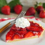 A delightful Strawberry Slab Pie featuring a buttery, crumbly crust topped with fresh strawberries and a luscious, jello-based filling. This easy-to-make pie is perfect for summer gatherings and can be garnished with whipped cream for an extra touch of indulgence.