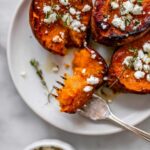- Finish and serve: Carefully transfer the roasted sweet potato rounds to a serving platter. Season with a touch more salt, drizzle with additional honey, crumble feta cheese over the top, and garnish with chopped fresh chives or parsley. Serve warm for the best flavor.