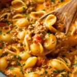 This flavorful Taco Pasta recipe combines cheesy goodness with savory ground beef and a blend of spices for a comforting one-pot meal. Perfect for busy weeknights, it cooks pasta right in the sauce, saving time and dishes while delivering rich, melty cheese and bold taco flavors.