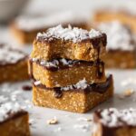 These Toasted Coconut Date Bars are a delicious, vegan, and gluten-free snack made from medjool dates, toasted coconut flakes, almond butter, and dark chocolate. They offer a perfect balance of natural sweetness and crunchy texture, chilled to set and coated in rich, melted chocolate for an irresistible treat.
