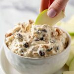 This Apple Toffee Dip is a rich and indulgent dessert dip perfect for any occasion. Creamy softened cream cheese is sweetened with light brown sugar and vanilla, then mixed with crunch Heath English toffee bits and mini chocolate chips. Served chilled with fresh sliced apples, this quick and easy dip offers a delightful combination of creamy, sweet, and crunchy textures that everyone will love.