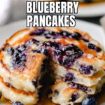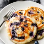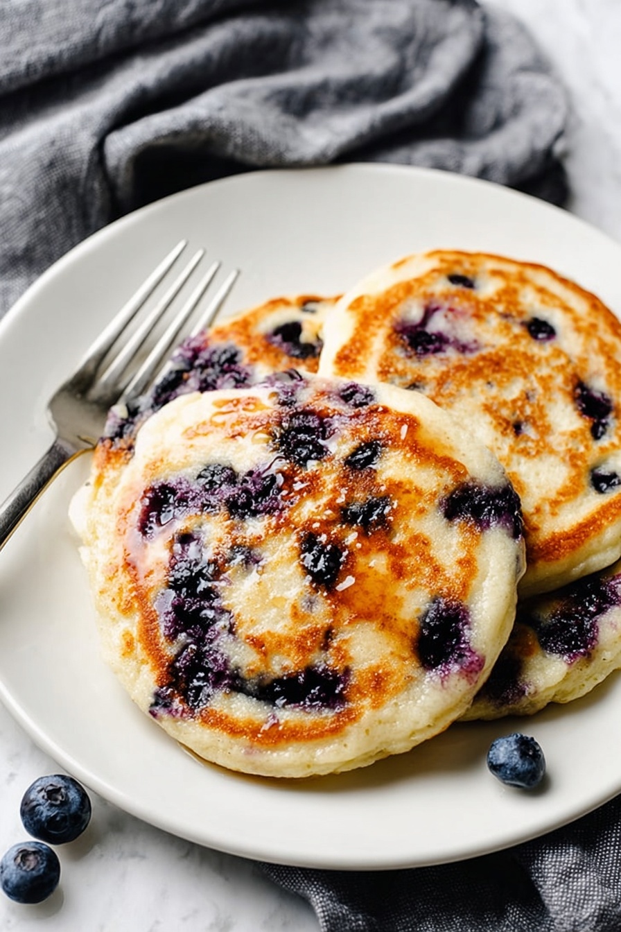 Frozen blueberries tend to release more water, which can make the batter watery and cause pancakes to stick or cook unevenly. I recommend using fresh blueberries for the best texture and flavor. If you only have frozen, thaw and drain them well before adding to the batter.