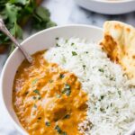 - Serve: Serve the vegan butter chicken over cooked white or brown rice. Garnish with chopped fresh cilantro and accompany with easy vegan naan. Enjoy your hearty, plant-based meal!