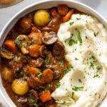 - Serve: Remove bay leaves, garnish with fresh parsley if desired, serve with mashed potatoes or crusty bread, and enjoy your hearty vegan mushroom stew!