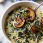 A comforting and nutritious wild mushroom, caramelized onion, and kale soup that combines earthy mushrooms, sweet caramelized onions, and tender kale in a flavorful broth finished with creamy coconut milk.